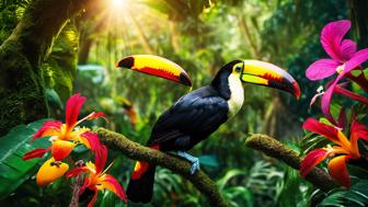 Tukane sind faszinierende Vögel, die in den Baumkronen des Dschungels von Mittel- und Südamerika zu finden sind. Ihre auffälligen Schnäbel, die oft mehr als die Hälfte ihrer Körperlänge ausmachen, sind ein markantes Merkmal und helfen ihnen, sich an die Umgebung anzupassen. Als Spechtvögel sind sie hervorragend darin, sich in den oberen Schichten der Wälder zu bewegen. Tukane ernähren sich hauptsächlich von Früchten, wobei sie auch auf Insekten und kleine Wirbeltiere zurückgreifen können. Eine bekannte Art ist der Riesentukan, dessen prächtiges Gefieder und beeindruckende Flugfähigkeiten ihn zu einem spektakulären Anblick machen. Diese Vögel spielen eine entscheidende Rolle im Ökosystem, da sie zur Verbreitung von Samen beitragen und somit das Wachstum neuer Pflanzen im Dschungel fördern.